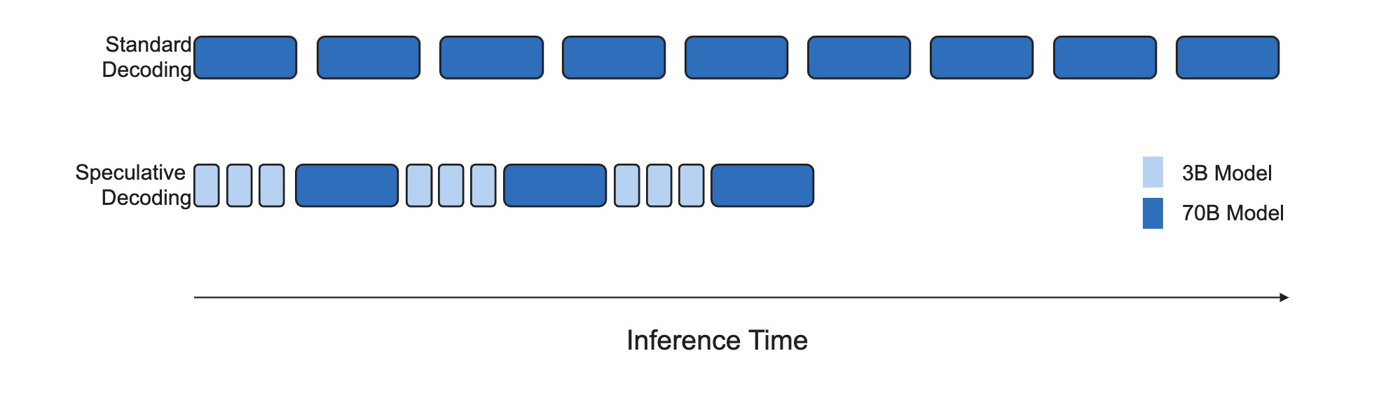 Speculative decoding accelerates inference by using a smaller, faster model to predict the next tokens in bulk, which are then verified or corrected by a larger, more accurate model like Llama 70B. Cerebras uses Llama 3.2-3B to generate tokens rapidly, followed by Llama 70B for spot checks. This hybrid approach nearly doubles the speed of inference without sacrificing accuracy.